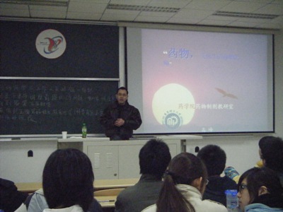结合自身学科优势和当今同学们对于健康知识的迫切需求而推出的学术融入生活的经典力作。本次活动由两个讲座组成,分别是高峰副教授带来的“药物,美化生活的魔术师” 和王春丽副教授主讲的“保养,从吃开始——看中药七十二变”。高老师给同学们讲解了有趣的药物融入生活的常识,其中提到许多同学们在健康饮食上的种种误区,也介绍了他做药物研究的一些感受。王老师则从吃的角度,通过讲述诸多食品即中药的例子让大家认识到:其实大家每天都吃的食品也是一味功能强大的药物,中药就在我们身边,保养不需要太多的化妆品、保健品,吃好才是重中之重。