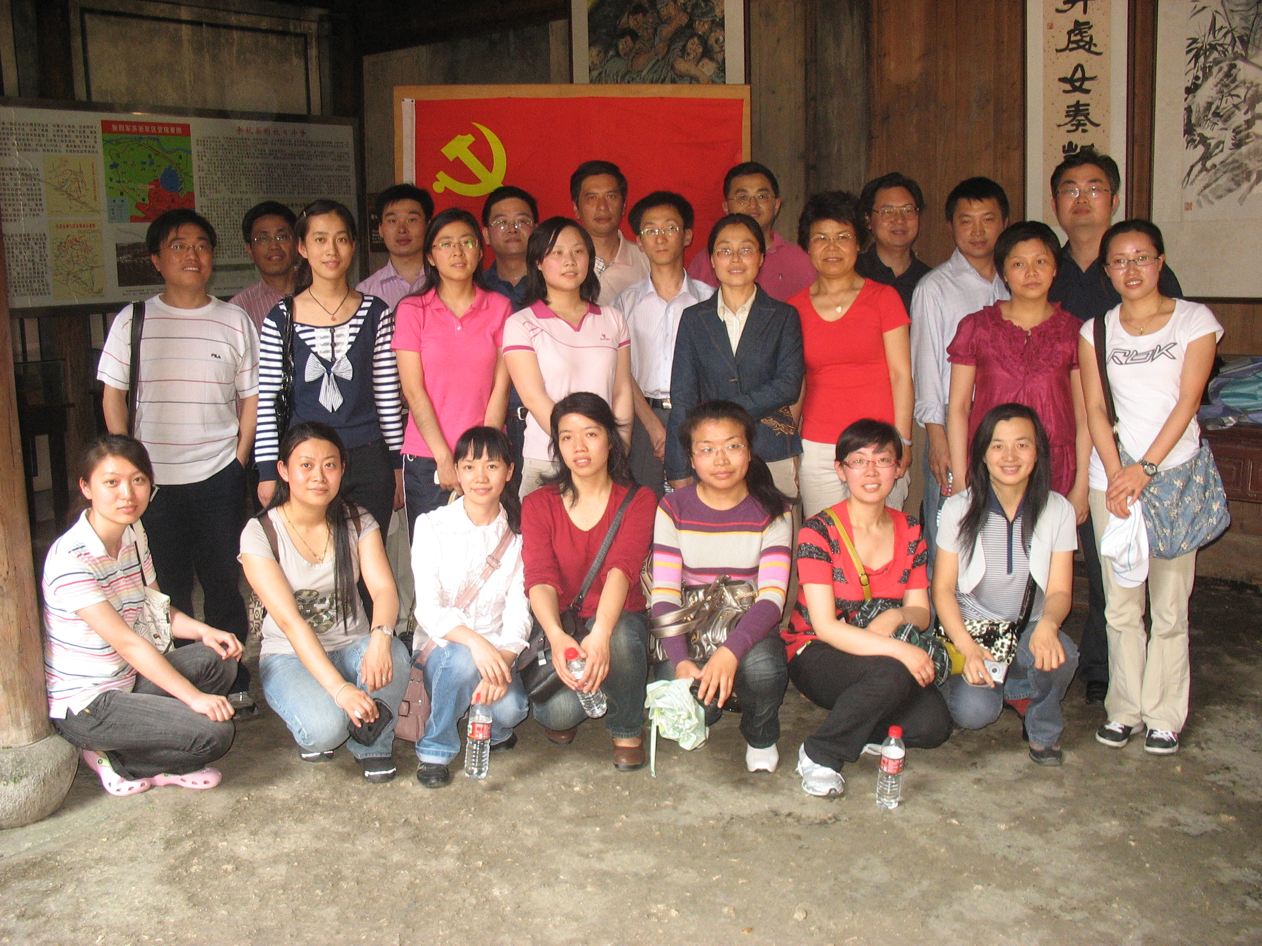 全体教师党员游览了风景区内“汤坑”和“茅塘”两大景点组。在景色优美,风光秀丽的风景区,党员教师沿着步步石阶缓缓登山,聆听着一个个美丽而古老的传说,感叹当地自然风景的优美。茅塘景区海拔380 米,主要以农居休闲为主,全体人员参观了保存完好的新四军随军被服厂旧址,在党旗下全体党员合影留念,纷纷表示要坚定中国特色社会主义理想信念,切实高举旗帜,积极学习科学发展观,听党的指挥。随后游览了古私塾旧址及“打年糕、酿土酒、磨豆腐、编草鞋、织竹篮、爆米花”等农村生活演示组成的茅塘古村落,体会了红色基地质朴的农家生活。