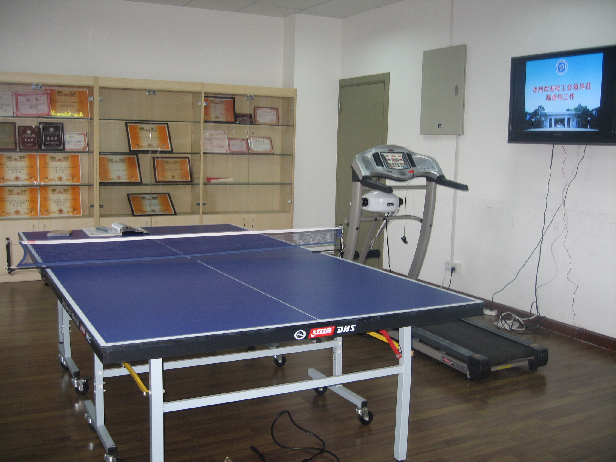 教工小家活动室,工会主席刘桂霞老师就活动室内的新型多功能液晶彩电、卡拉ok设备、跑步机、乒乓球桌等进行了介绍与演示,整个教工小家活动室的建设与布置得到了全体工作小组成员的一致认可。活动室的橱窗内整齐陈列着成人影片
