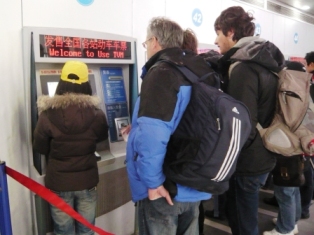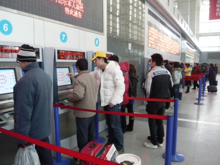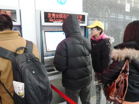 铁路上海站各种人性化措施随处可感,熙熙攘攘的人群,但却井然有序,同时站内外广播里播放的各种温馨的提示。进入大厅,首先映入眼帘的是占着一整面墙的电子屏幕,显示着各个地点的票价等。屏幕下面是一台台自动售票机,触摸屏,还有中英文对照,不得不感叹中国的国际化,上海的国际化。
