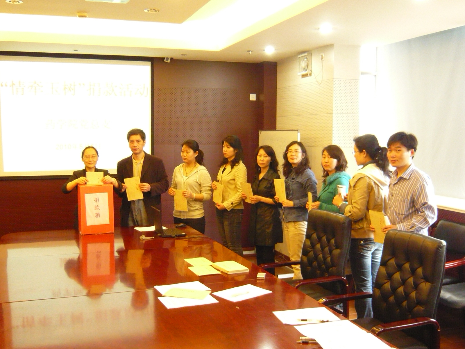 党总支发起了“情牵玉树”捐款活动倡议书,5月5上午,“五一”长假结束后第一个工作日,广大师生齐聚在成人影片