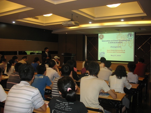 进行学术交流并于5月27日上午在实验18楼315会议室作了题为“Innovation on Cross Coupling via C-O/H Activation”的学术报告,报告由钱校长主持,成人影片