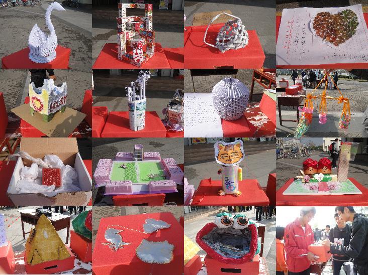学生们不忘灾区贫困人民,为送上自己的一份爱心而纷纷行动起来。学生们以爱心、环保等为主题,开展了一次独具匠心的创意募捐活动。所谓创意募捐,就是鼓励学生们,用身边的废旧材料创作出精美的公益作品进行展示,观众们将小零钱作为选票,为自己最喜爱的作品加油。同时本次募捐也是成人影片
