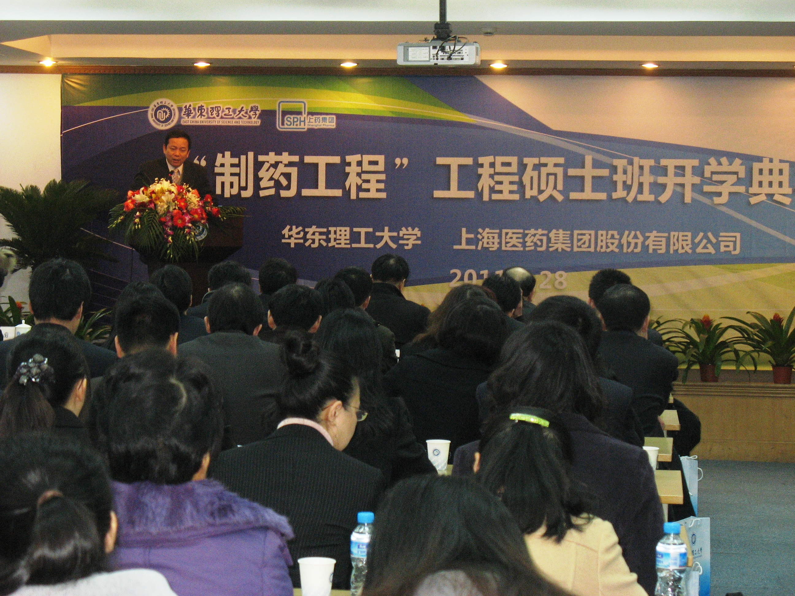 校长钱旭红、副校长于建国等领导出席了开学典礼。据了解,本期制药工程工程硕士上药班的30名学员全部来自上海医药各下属企业或研究机构的生产、研发一线。