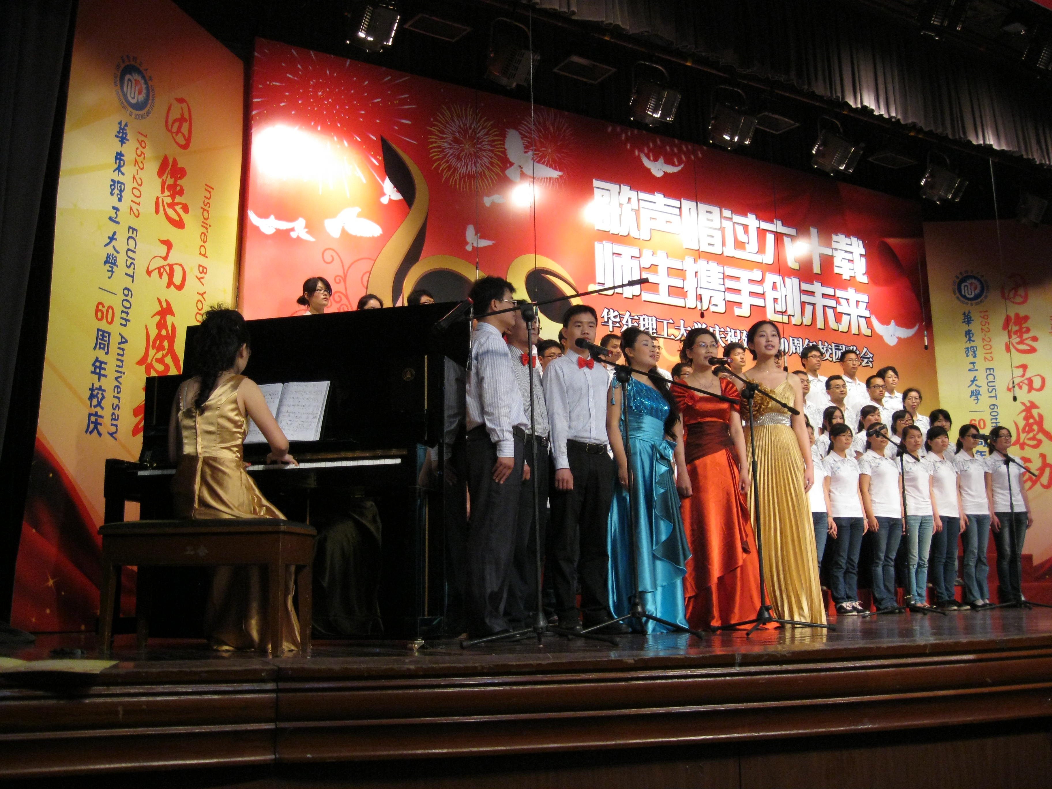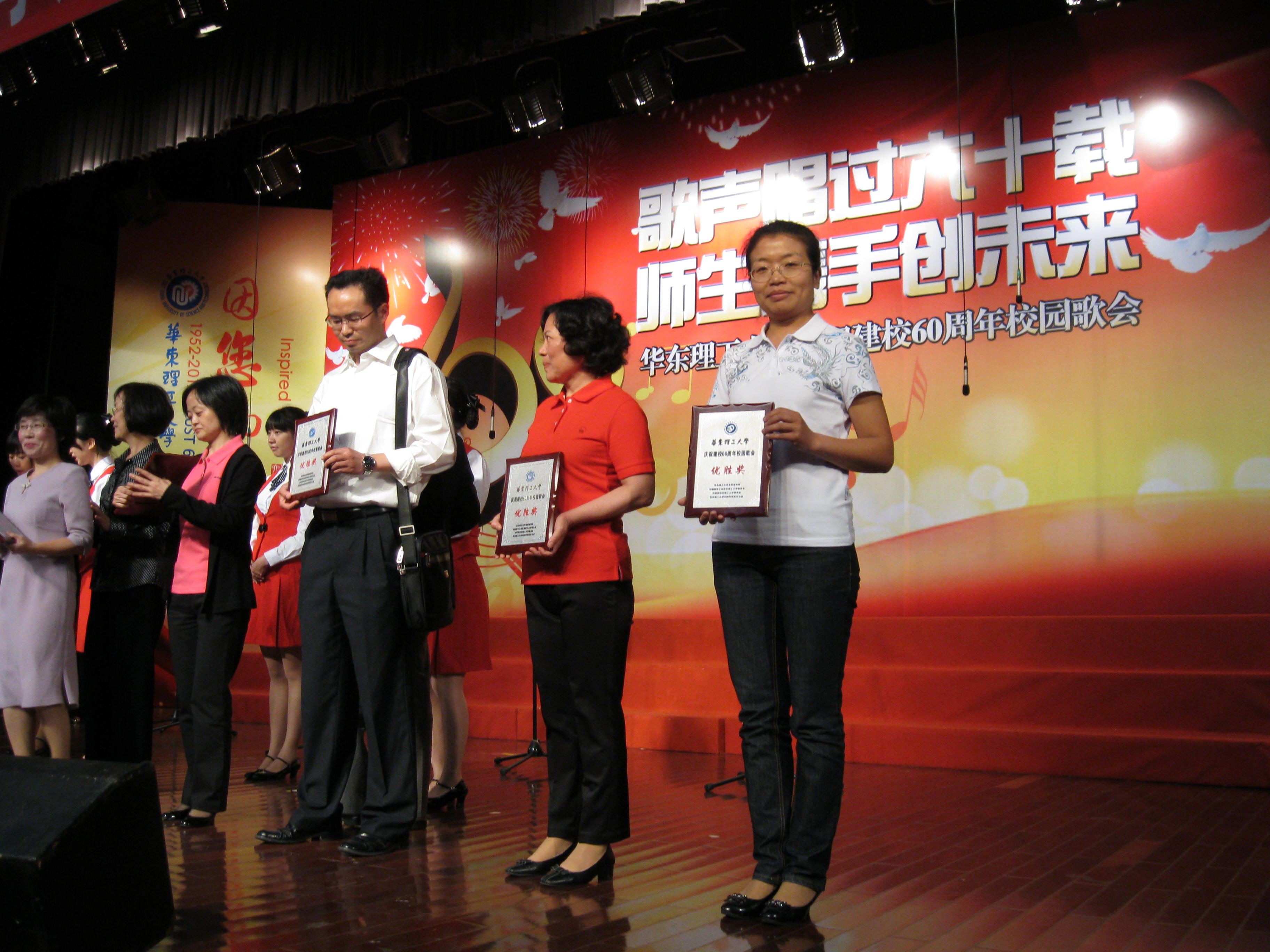 5月25日,成人影片 60多名师生参加了以“歌声飘过六十年,师生携手创未来”为主题的“庆祝建校60周年校园歌会”比赛。成人影片 代表队一上场,一首《祝你平安》娓娓道尽了我们对母校六十华诞的深深祝福,一曲《阳光路上》更是如实唱出了我们今天的幸福生活。此次参赛从组队到排练全院师生共同努力合作,唱出了成人影片 积极向上的精神风貌和团结奋进的昂扬斗志,共同为成人影片 六十华诞献礼。最终成人影片 在此次比赛中获得了优胜奖的好成绩。