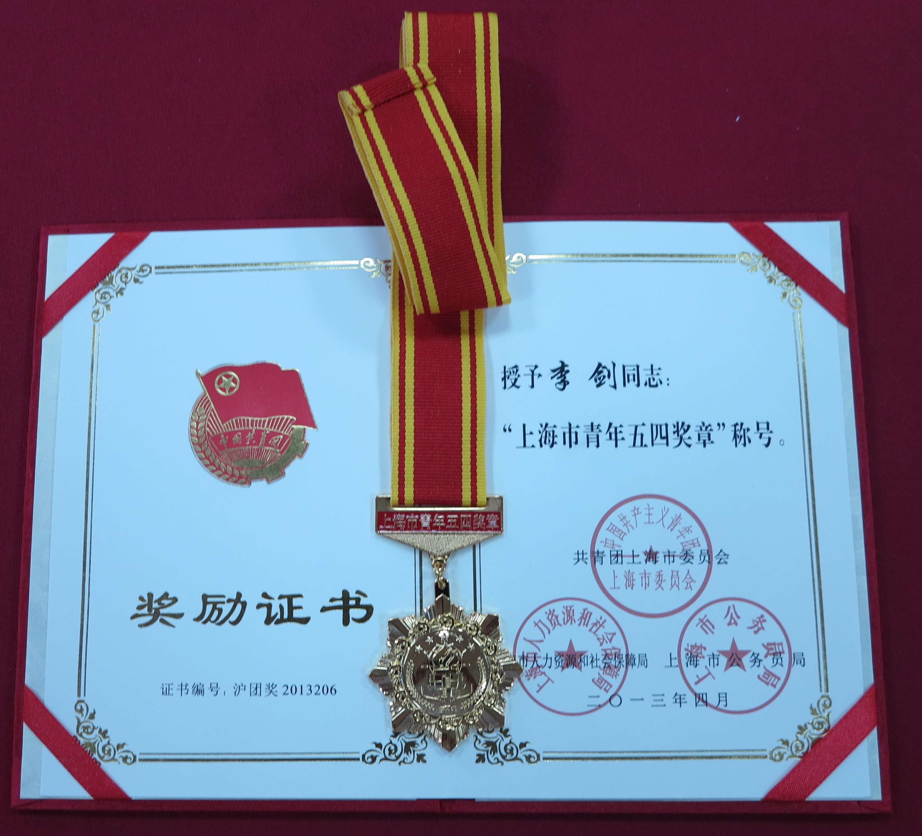 李剑教授作为校青年教师杰出代表,被共青团上海市委员会授予2012年度“上海市青年五四奖章”称号,以表彰他在教学和科研工作中做出的优异成绩。据悉,这是继去年成人影片
