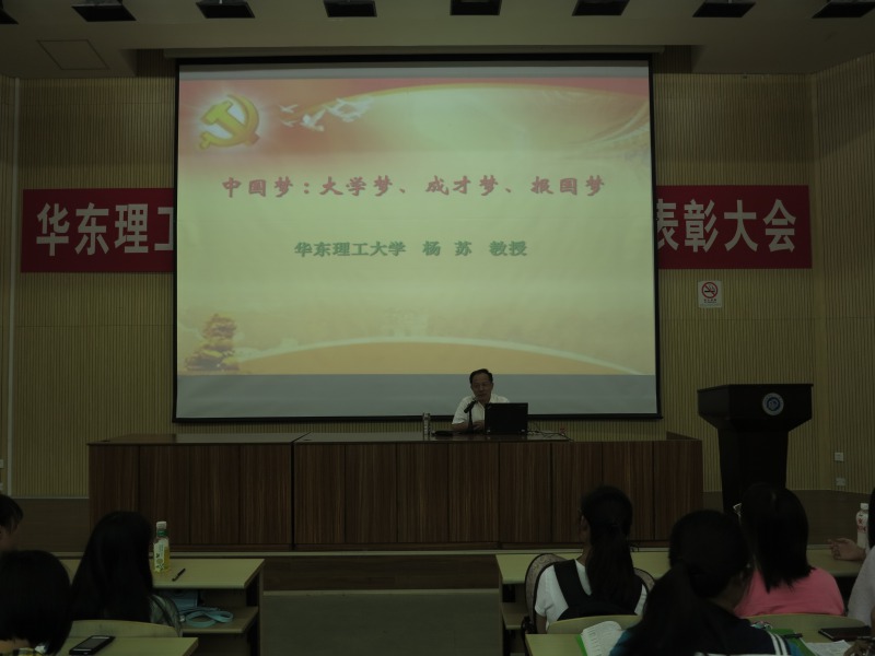 杨苏首先带领新生回顾了中国梦提出的背景和发展历程,指出中国梦与美国梦在时代背景、思想导向、本质内涵等10个方面的区别,强调了中国梦在国家、民族层面上的重要意义,并就当代大学生如何实现中国梦作了重点阐述。随后,他与大家分享了自己年轻时代在艰苦条件中的生活、学习经历,希望同学们珍惜来之不易的学习条件,探寻个人人生之路,踏实努力践行自己的梦想,为“中华民族伟大复兴的中国梦”的实现付出自己的一份力量。