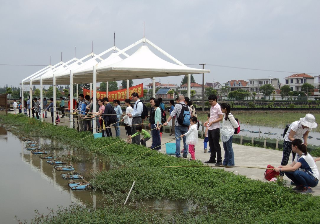 一路上经过简单激烈的儿童猜谜语等趣味节目后,车辆满载欢声笑语到达了我们此次活动的第一个目的地——沐雨农庄。沐雨农庄为上海环科院、同济大学等单位的生态研究基地,基地内有小龙虾、黄鳝、牛蛙等养殖区,还有蔬菜、枇杷等种植区。进入农庄后,小朋友都兴奋不已,很快大家参与到了农庄的各项科普活动中,或采摘琵琶,或钓龙虾,或参观农庄内的各个养殖基地。农庄的科普参观体验结束后是简单的午餐,午餐的所有食材全部来自基地。午餐结束后,小朋友们亲自动手挖菜、摘豆子以及挖土豆,虽然已是中午艳阳高照,但是大家仍然玩得很开心。整个上午的科普体验让小朋友们切实地体会到了我们日常生活中的“食”之来源,更让大家体会到了“食”之来之不易。