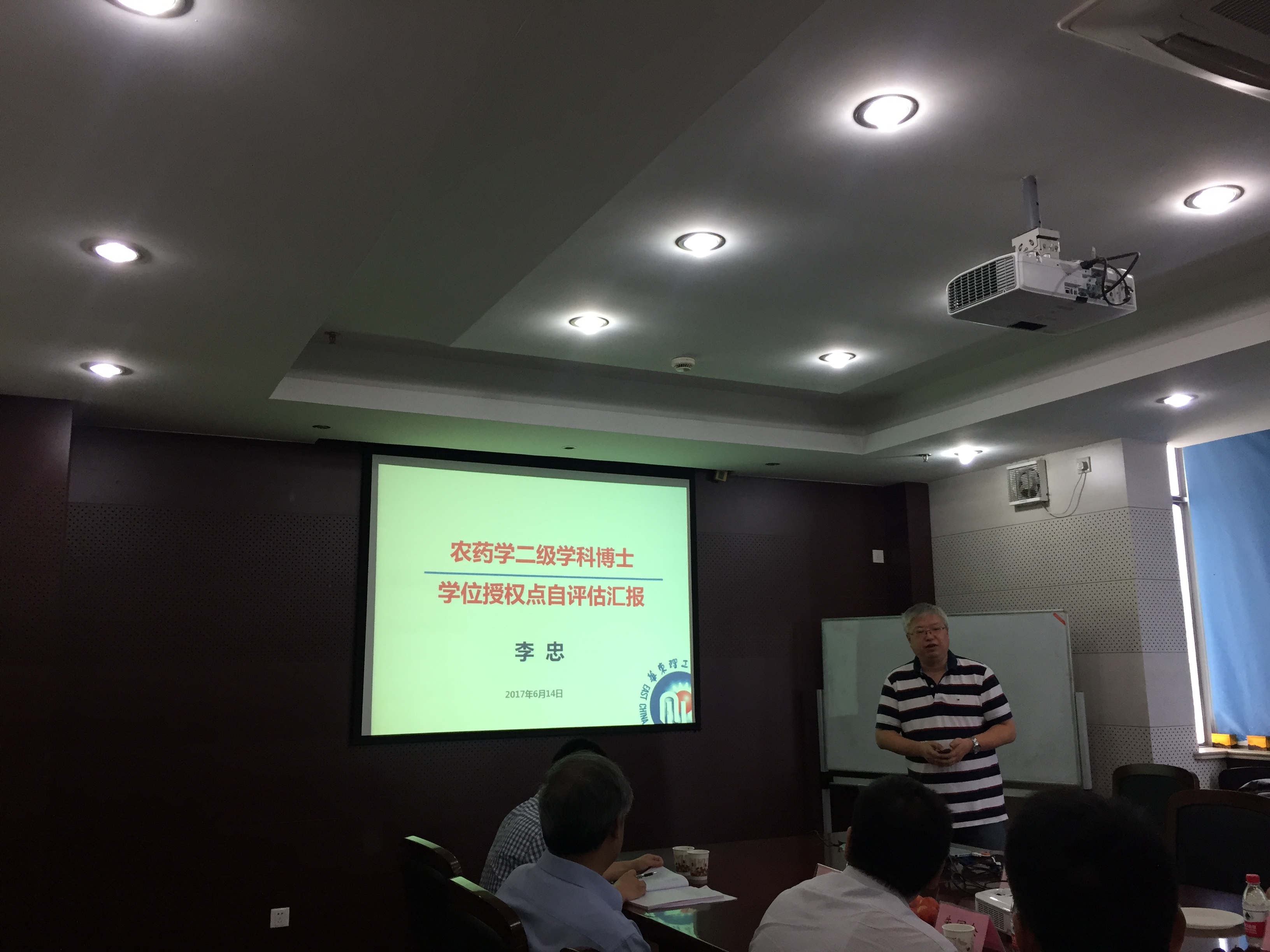 农药学科负责人李忠教授从农药学学科的发展历史、学科培养目标、基本条件、近五年的科学研究成果及进展、国内外合作与交流、教学科研条件、学科人才培养以及学科未来发展规划等方面,向专家组作了汇报。专家组就相关问题进行提问,对自评材料进行了审议,同时评估专家实地查看专业实验室及实验平台,与学科师生交流。