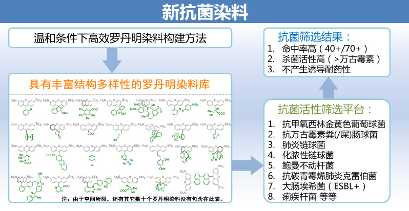 陈代杰教授课题组深入合作,在该研究方向取得进展。近期,相关工作被《自然·通讯》以“A diversity-oriented rhodamine library for widespectrum bactericidal agents with low inducible resistance against resistant pathogens”在线报道。