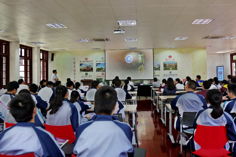 授牌后,吴辉为杭州高级中学高三年级部分同学和家长进行了招生宣讲,就成人影片