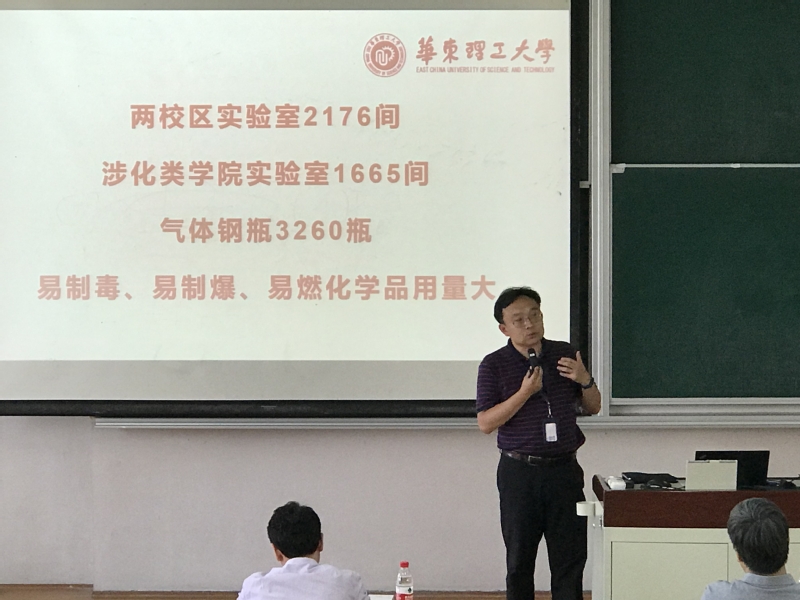 实验室安全的基本情况,从危害识别、风险评估、减少风险、预防工作四个角度为切入点,结合近几年高校发生的实验室安全事故案例,对实验室常见的钢瓶管理、危险化学药品管理、通风橱的使用、实验室废液的处理、个人安全防护等进行了生动详细讲解。