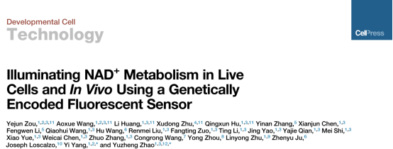 、光遗传学与合成生物学交叉学科研究中心赵玉政教授与杨弋教授合作在国际权威学术期刊Developmental Cell发表题为“Illuminating NAD+ metabolism in live cells and in vivo using a genetically encoded fluorescent sensor”的技术长文,报道一种NAD+代谢成像新技术,可原位、实时动态追踪细菌、哺乳动物细胞、斑马鱼、小鼠以及人源尿液干细胞等多种生物体内NAD+代谢水平。据悉,这也是该杂志近五年发表的国内首篇“Technology Article”。