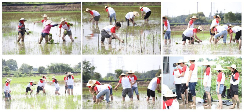 党委的组织下,学院农药学专业师生撸起袖管,套上筒靴,与上海市青浦区世鑫农业合作社的工作人员一起弯腰插秧,以禾为笔绘制稻田画献礼建党百年。