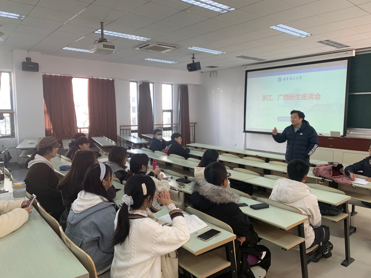 为充分了解学校本科招生宣传效果,加强浙江、广西壮族自治区本科招生宣传工作组与两省在校学生之间的联系,以进一步优化本科招生宣传工作,2021年11月8日,浙江、广西壮族自治区本科招生宣传工作组在奉贤校区C202教室召开了2021级本科新生代表座谈会。