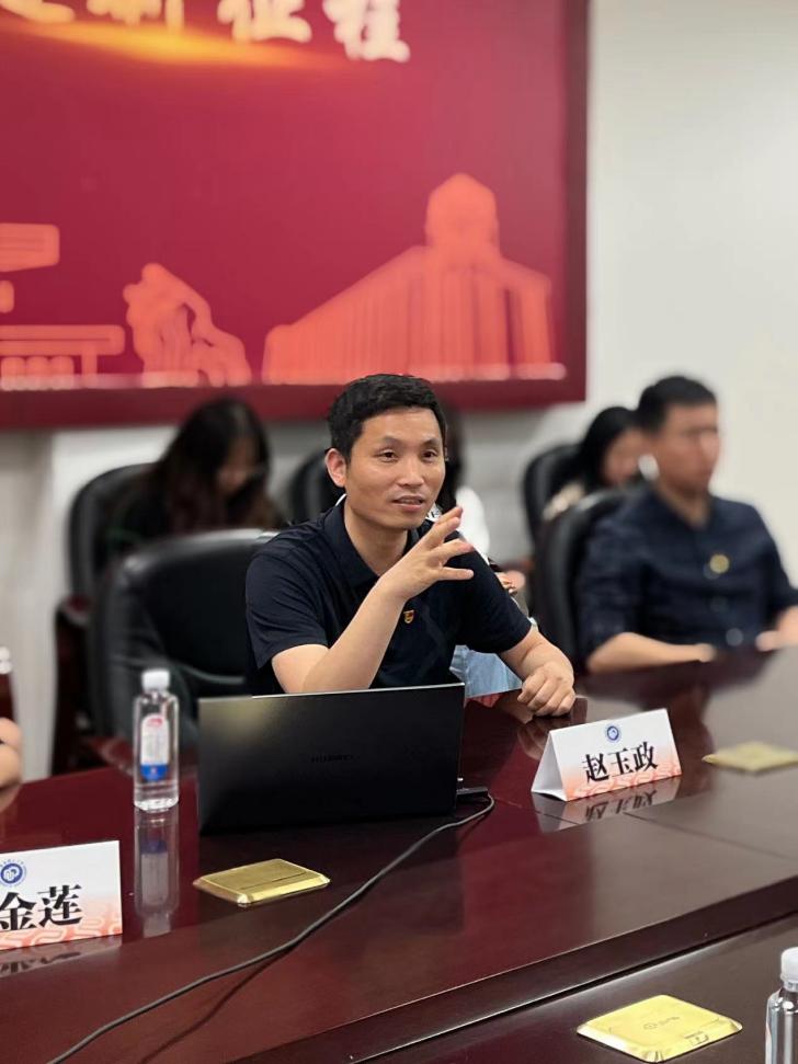 赵玉政教授,赵教授做了题为《细胞代谢监测示踪与生命健康》的报告,介绍了学院在标志性科研成果、学科现状及发展趋势等方面的研究进展,同时推动主题教育见行见效,围绕“强化现代化建设的教育科技人才支撑”的主题与同学们进行了热烈的互动交流。