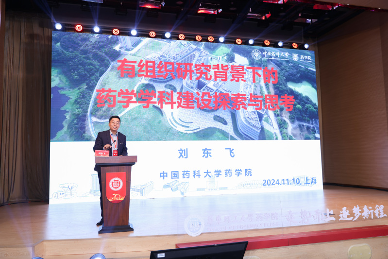 副院长刘东飞教授以“有组织科研背景下的药学学科建设探索与思考”为题,介绍了中国药科大学健全的药学学科门类,以及全链条药学学科在有组织科研中的重要性问题。