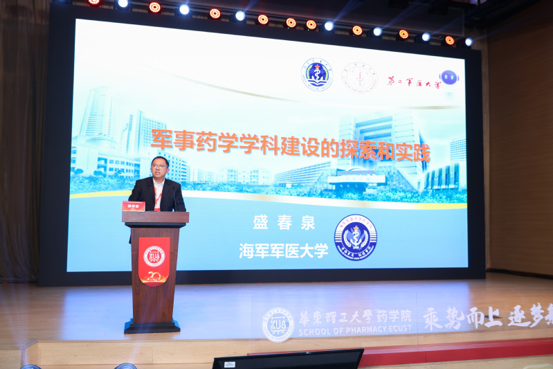 院长盛春泉教授以“军事药学学科建设的探索和实践”为题,介绍了军事药学这一药学学科领域的独特分支在国防建设中的重要作用。