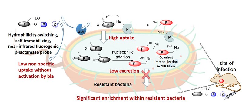 谢贺新教授课题组在活体动物耐药细菌感染荧光成像研究方面取得了重要进展,相关成果以“Highly Sensitive In Vivo Imaging of Bacterial Infections with a Hydrophilicity-Switching, Self-Immobilizing, Near-Infrared Fluorogenic β-Lactamase Probe Enriched within Bacteria”为题发表于Advanced Science。
