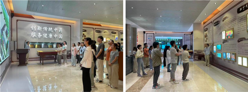 在技术团队的引导下,师生们探访了和黄药业的质量检验部、车间生产线与物流仓储系统。在质量检验部,负责人为同学们详细讲解了原料、辅料及包材等项目的理化检验流程与标准,以确保药品安全有效并符合法规要求。在生产车间,负责人介绍了药材称量、混合、切片等过程所需的设备,让同学们对药品生产过程中的质量把控有了直观认识。在立体式自动化仓库内,药品货架整齐排布,负责人现场展示智能出入库系统,展现了现代化物流仓储在药品管理中的精准与高效。参观过程中,同学们认真学习、积极提问,与技术人员进行交流与探讨。