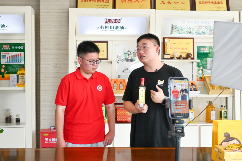 在企业营销部经理罗武涛的指导下,团队成员初次体验“青耘福建 直播助农”专场直播,与观众互动、推广茶油产品,切身感受新业态对农产品“出圈”的强劲推力,在实践中了解茶油产品从生产端走向消费端的最后一环。