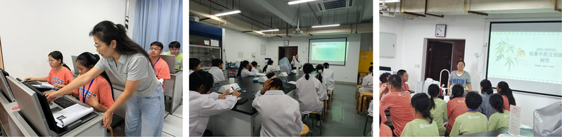 为让营员全方位感受医药科技的创新魅力,本次夏令营设置了三大学习板块,兼具理论深度与实践价值。在“理论研习”板块,刘桂霞教授开设《人工智能与药物设计》系列讲座,为营员揭示了人工智能驱动新药发现的巨大潜力;景秋芳副教授主讲《传统中药剂型与现代药物剂型》,深度解析了从丸散膏丹到智能递送系统的演变历程;陈晓蓓副教授讲授《在分子世界探索本草的奥秘》,引领营员洞察中药活性成分的分子结构与作用机制。在“实验实践”板块,刘桂霞、景秋芳、陈晓蓓、周翾、孙仲颖五位老师联合指导营员们完成了5场主题实验,包括祛暑化湿类中药有效成分的分子模拟、靶蛋白分子对接、本草标本制作、中药胶囊制备及其质量分析。在“企业讲堂”板块中,上海雷允上药业有限公司专家主讲‘药你健康“创新讲堂,现场解析中药制药产业前沿案例。